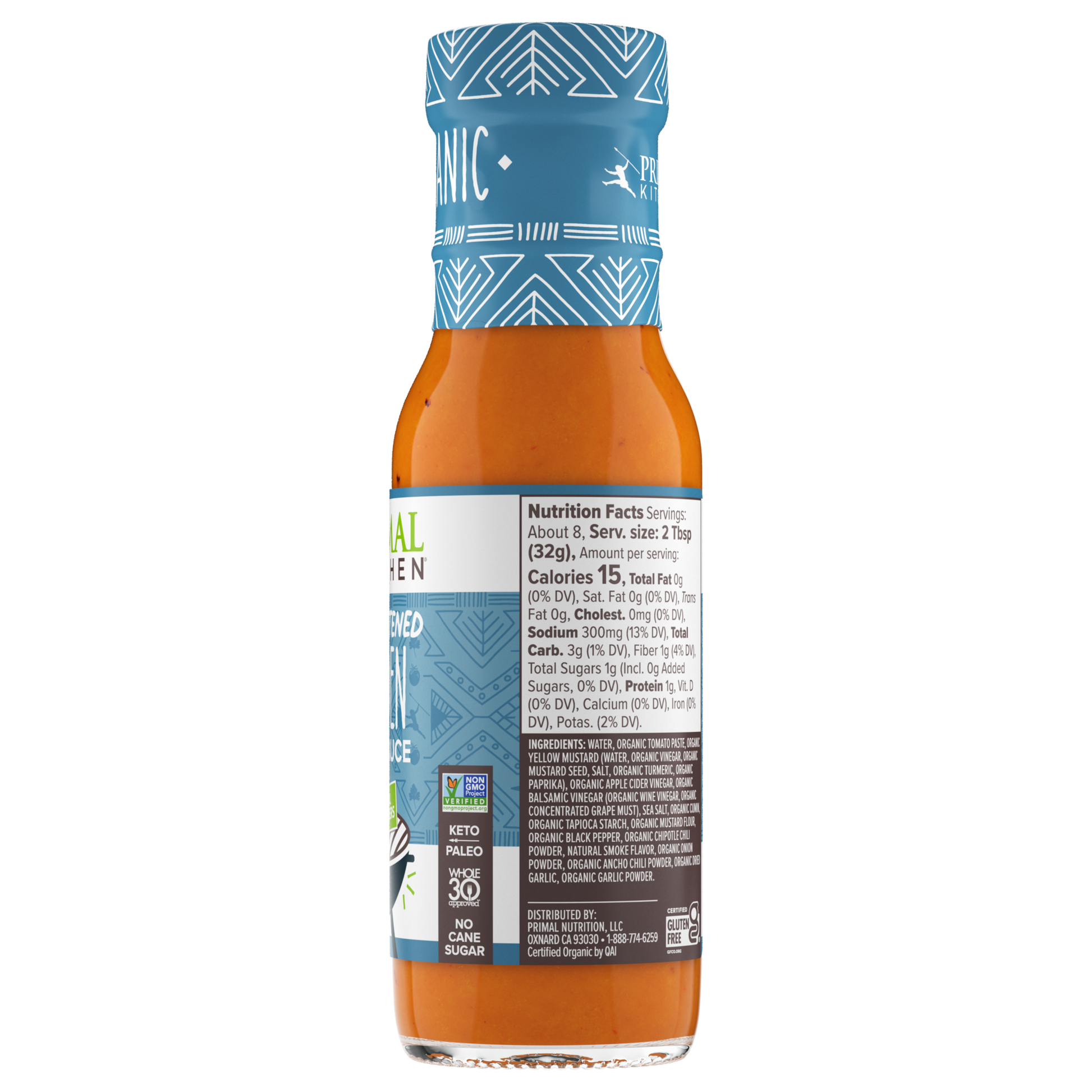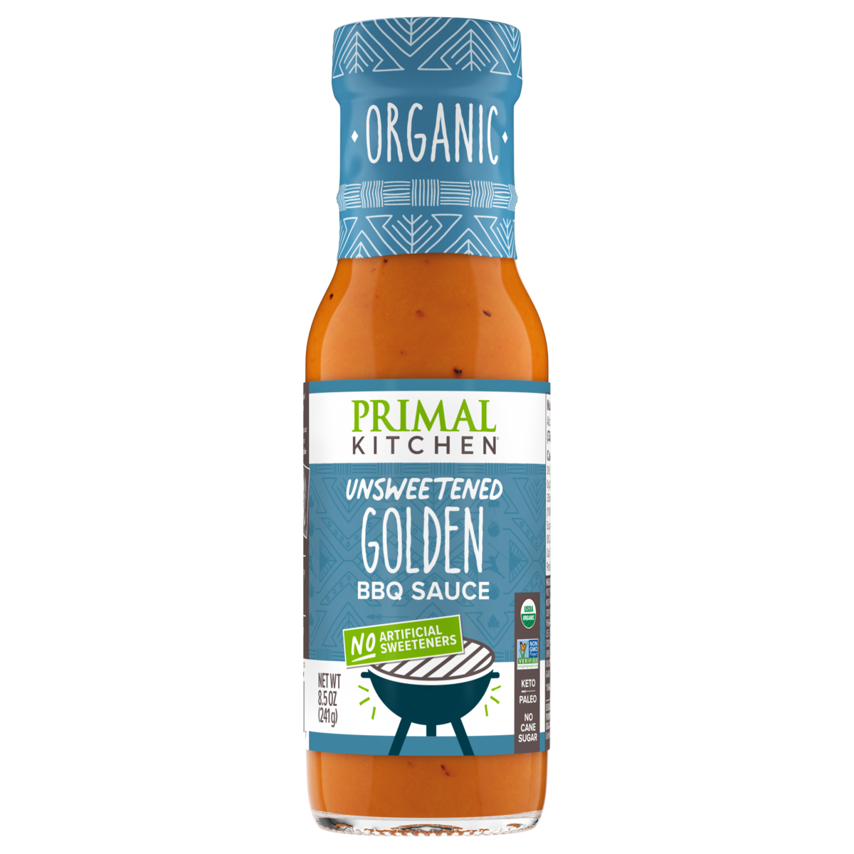 An update of the classic Carolina BBQ sauce, PRIMAL KITCHEN® Golden BBQ Sauce is sweet, tangy, and full of flavor. Certified Paleo, Keto Certified, and Whole30 Approved®, this unsweetened sauce is made with organic ingredients. Slather on pulled pork or serve up on grilled peppers. Spicy and sweet, from veggies to meat, this sauce can’t be beat!