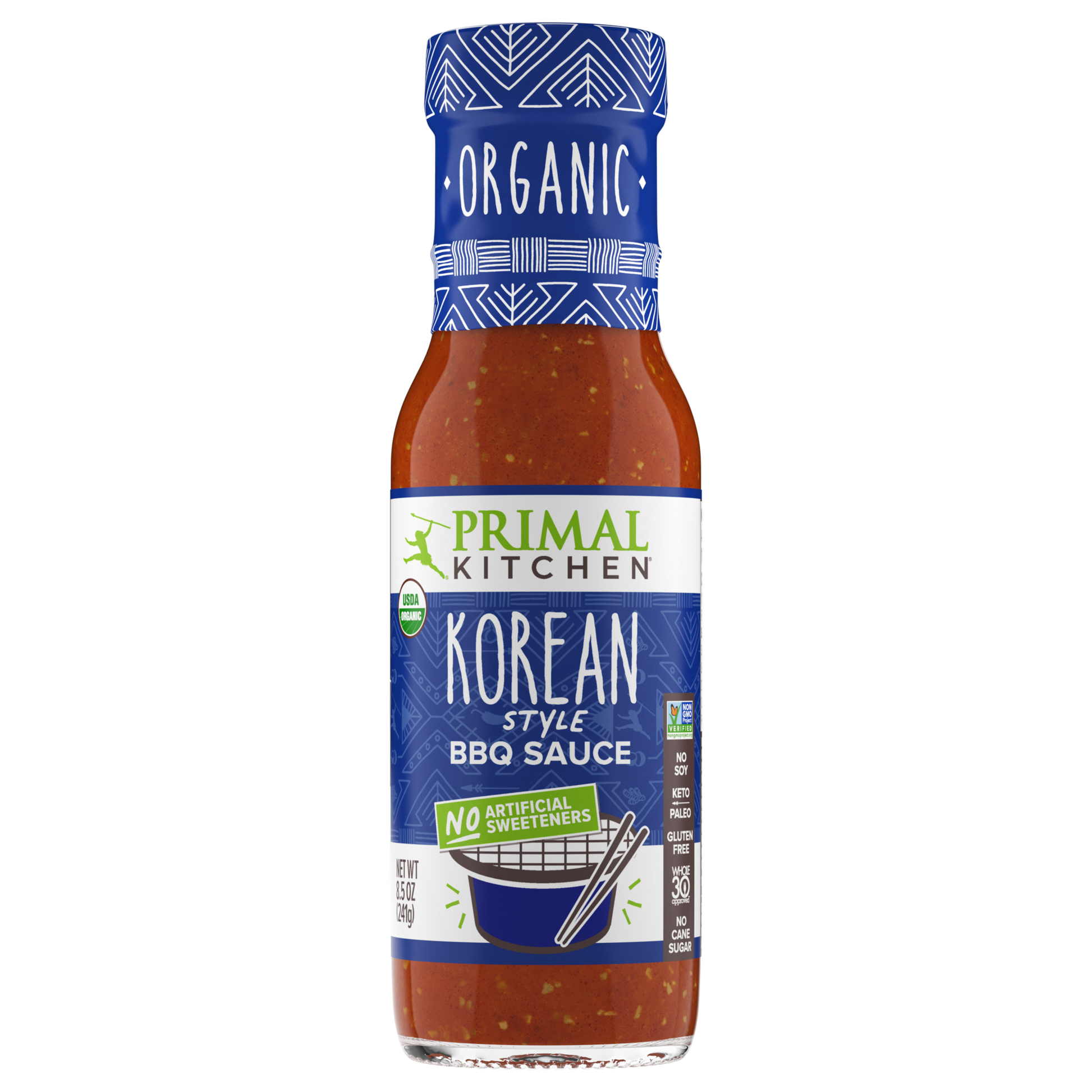 Make your meals sizzle with Primal Kitchen® Korean Style BBQ Sauce. Crafted with no artificial sweeteners, high fructose corn syrup, or cane sugar, this gluten-free and soy-free BBQ sauce combines plant-based sweeteners with a mouthwatering blend of spices, to create a crave-worthy Korean BBQ flavor that will make your taste buds pop. Perfect for beef bulgogi, shrimp skewers, and wings!
