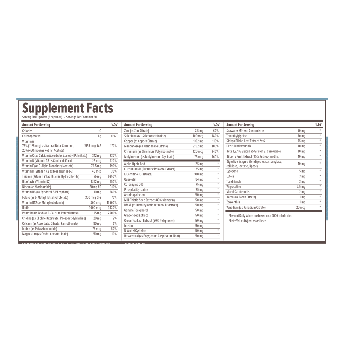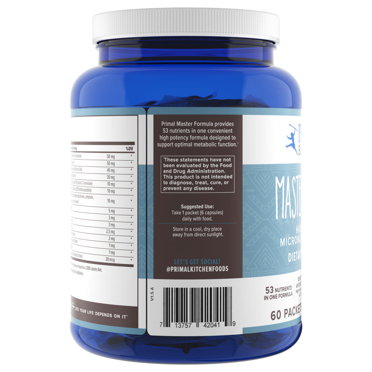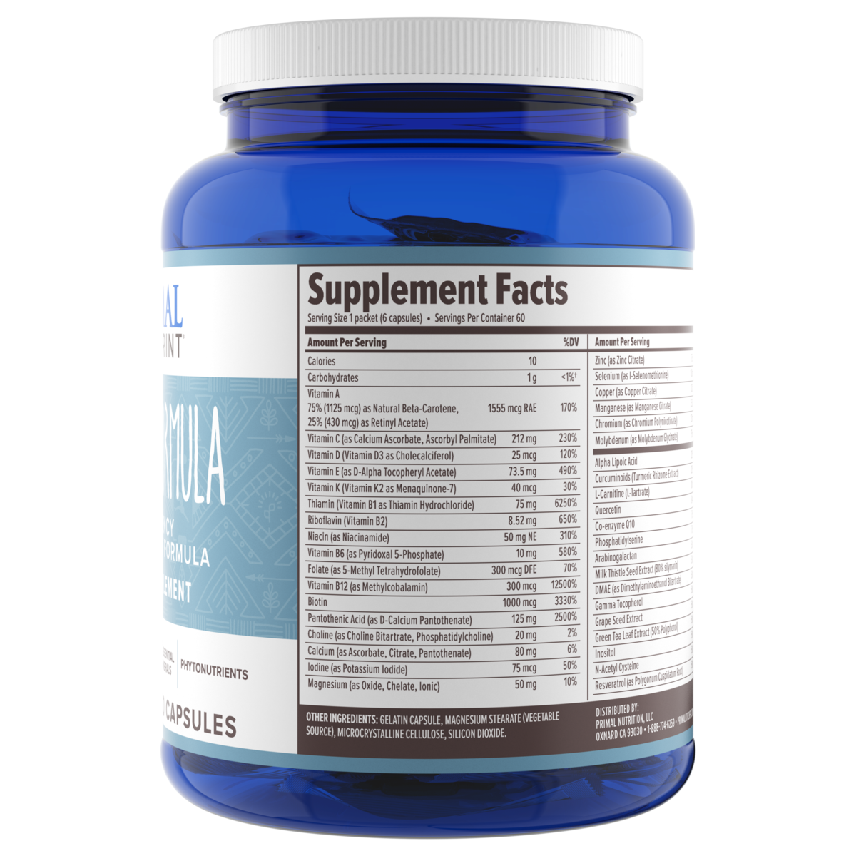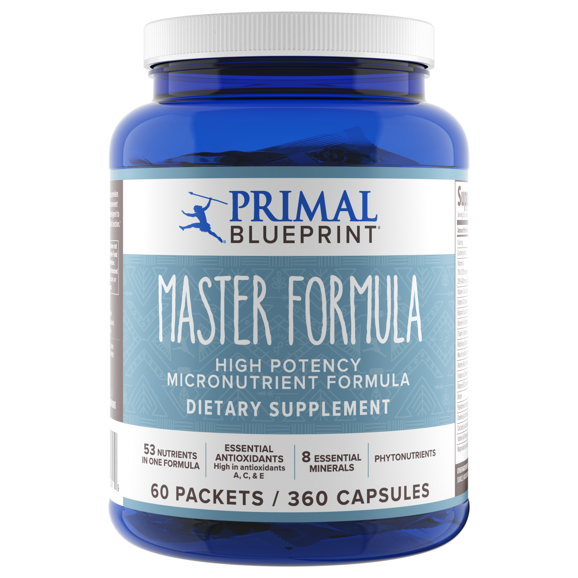 A multivitamin for men and women offering a premium high potency vitamin-mineral-antioxidant formula with phytonutrients. With 53 quality nutrients, Primal Master Formula is a comprehensive dietary supplement designed to support optimal metabolic function.†