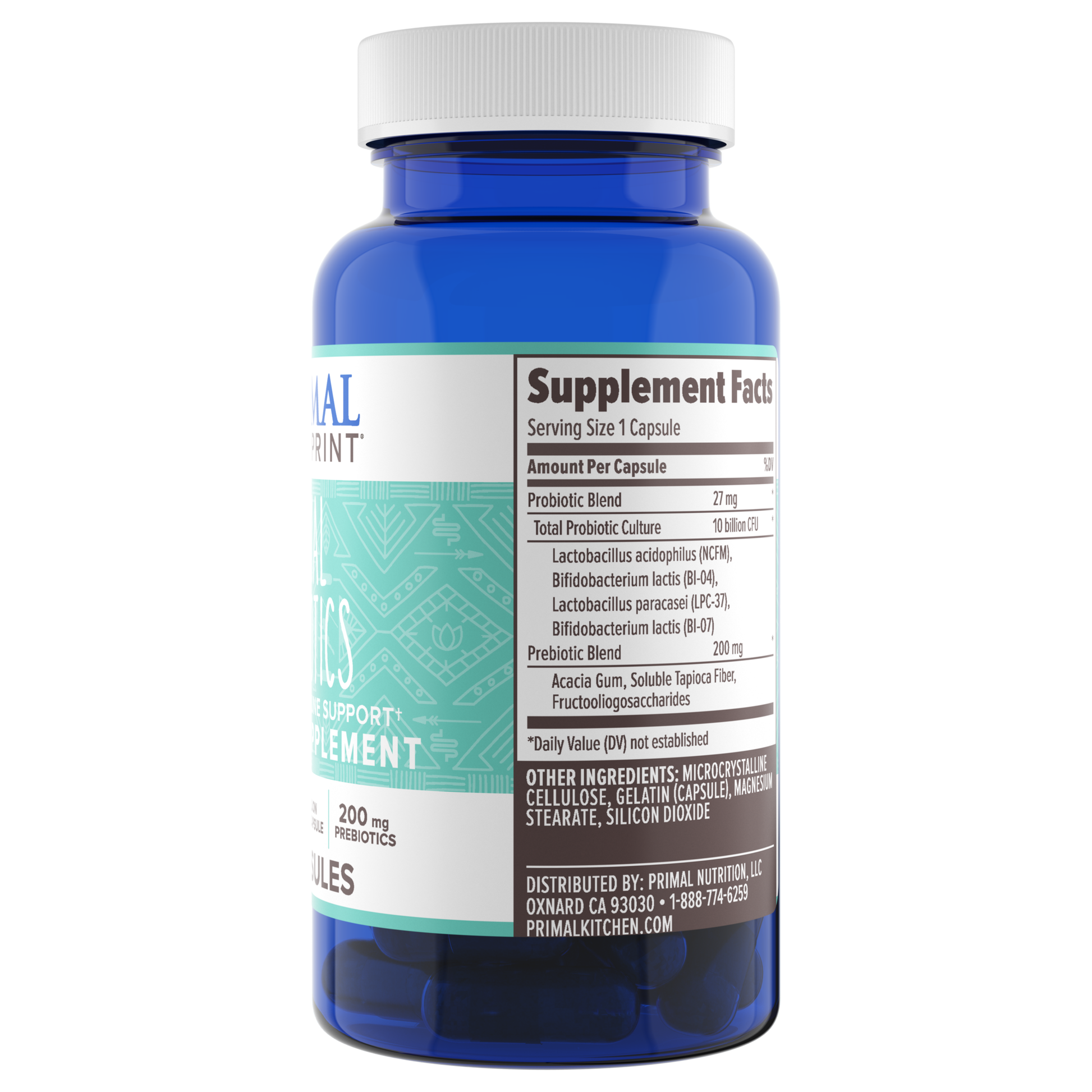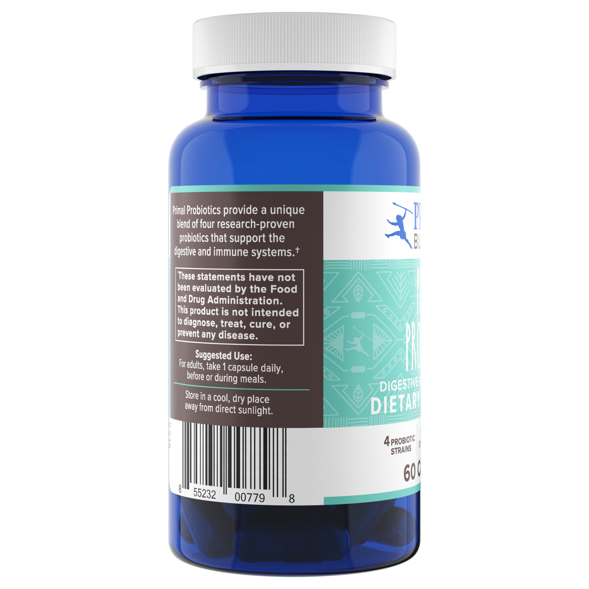 Nearly 80% of your immune system resides in your digestive tract. A balanced gut microbiome plays an important role in supporting both the immune and digestive systems†. Primal Probiotics feature four research-proven probiotic strains designed to support your gut with 10 billion colony-forming units of probiotics per capsule.